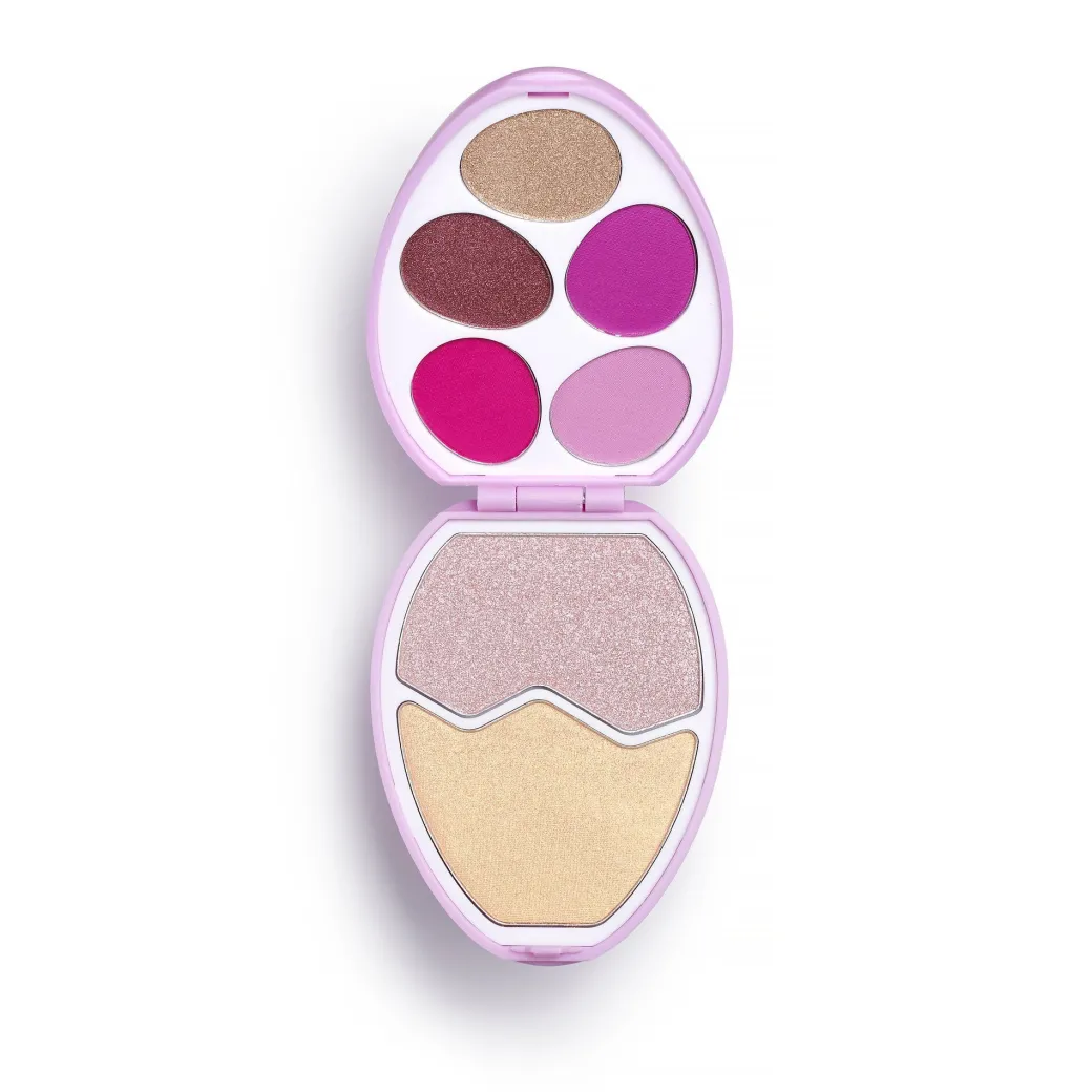 Nos palettes spéciales œufs de Pâques sont de retour en édition limitée. Préparez votre panier !Ouvrez le boîtier en forme d’œuf et découvrez deux highlighters et cinq fards à paupières aux tons mats et irisés. Grâce à sa jolie gamme de teintes roses et violettes, ce petit boîtier constitue le cadeau idéal pour vous-même ou pour toute autre fan inconditionnelle de produits de beauté ce printemps. Ouvrez-en un ou collectionnez-les tous avant qu’il n’y en ait plus ! Poursuivez la chasse aux œufs en collectionnant les quatre palettes : Flamingo (pêche et corail), Candy (roses et violets), Chick (rouges et ambre) et Chocolate (marron et couleurs neutres). Végétalien. Sans cruauté.