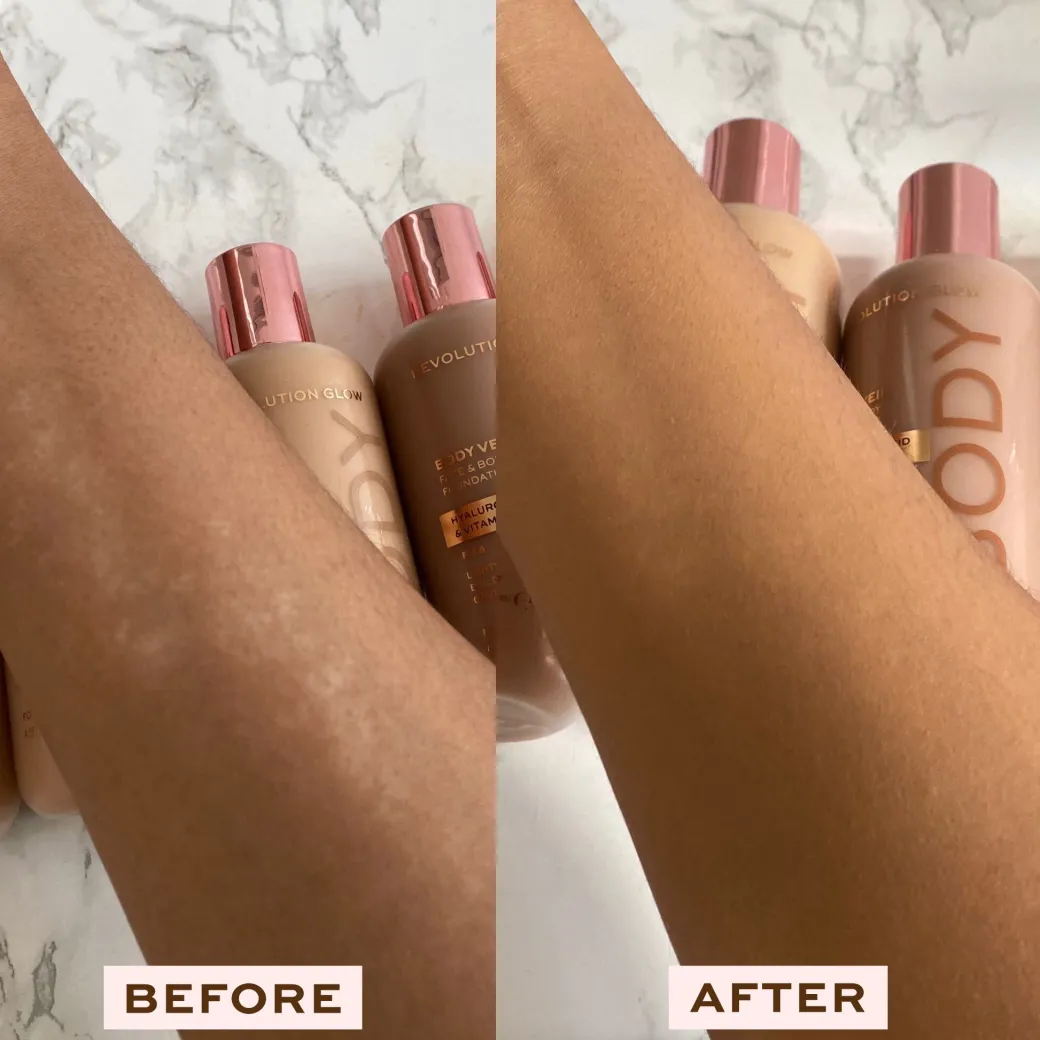 Nous sommes fiers de vous présenter Revolution Body Veil Foundation : le PREMIER fond de teint pour le visage et le corps de Revolution. Léger et aqueux, ce fond de teint liquide vous offre une couvrance légère, modulable et au fini satiné.