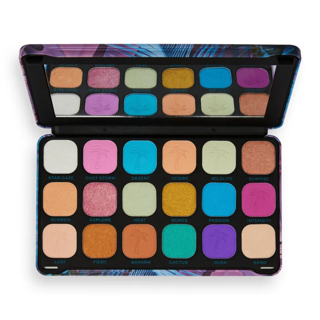 This 18-shade palette is made up of intensely pigmented rich jewel tones, nudes, and gorgeous bronze shimmers. The must-have palette this Summer. Formulated with the same creamy matte and pigmented shimmers you know and love! Best used with the Revolution Ultimate Eye Base to make the colours really POP!