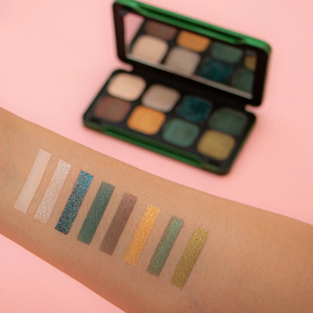 Les palettes Revolution Forever Flawless Dynamic se déclinent en 8 harmonies de couleurs intenses : violets, verts, rouges et bleus ou choisissez des tons froids avec les versions aux tons fumés, dorés, roses et neutres. Chaque palette contient 8 fards de paillettes, foils, mats et irisés.