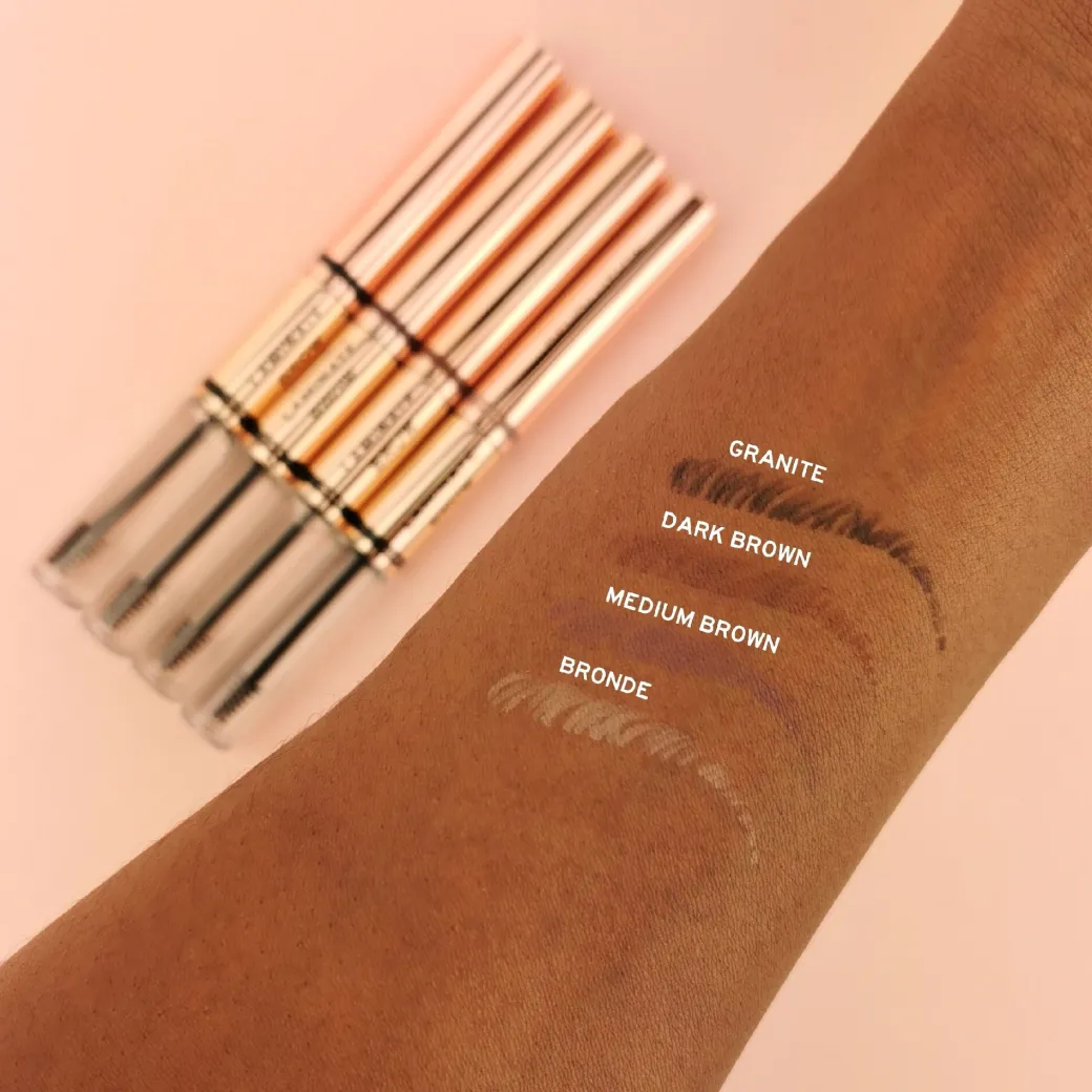 Premièrement, créez une forme parfaite avec le crayon biseauté, puis laminez et fixez vos sourcils avec la brosse pour un effet lifté plus fourni (même sur les sourcils clairsemés). Application simple, des résultats comme en salon – aucune technique requise !