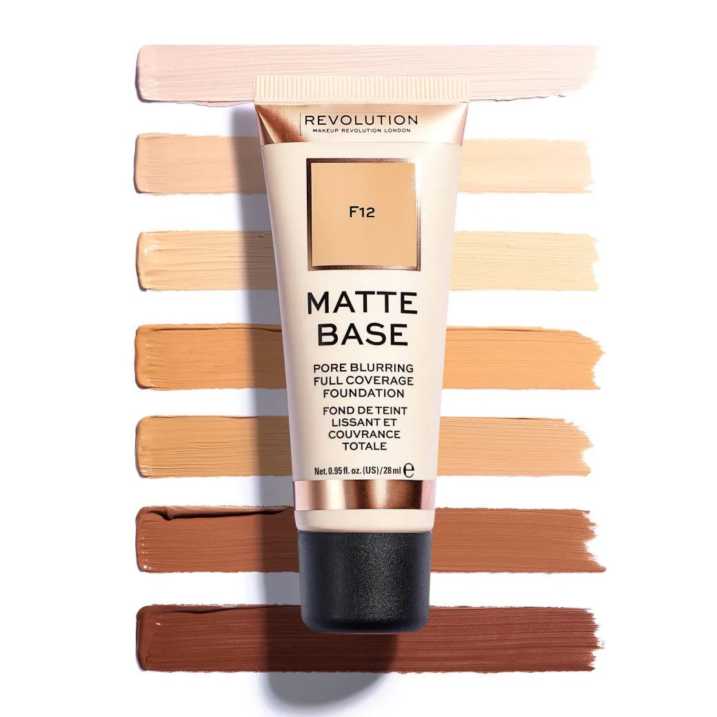 Meet your matte made in heaven with our latest addition to the Revolution foundation family – Matte Base Foundation. Designed with team matte mantra in mind – because not everyone can do dewy! This foundation offers a mattifying solution for oily, blemish-prone complexions – or for those who simply prefer a matte finish. Launching in 24 skin-true shades and a range of undertones, this full-coverage foundation boasts a long-wearing, matte finish that still manages to feel lightweight and comfortable on skin, whilst diffusing the appearances of pores for a blurred, airbrush-like finish. Designed in a sleek, travel-friendly tube with pin-worthy rose gold accents.