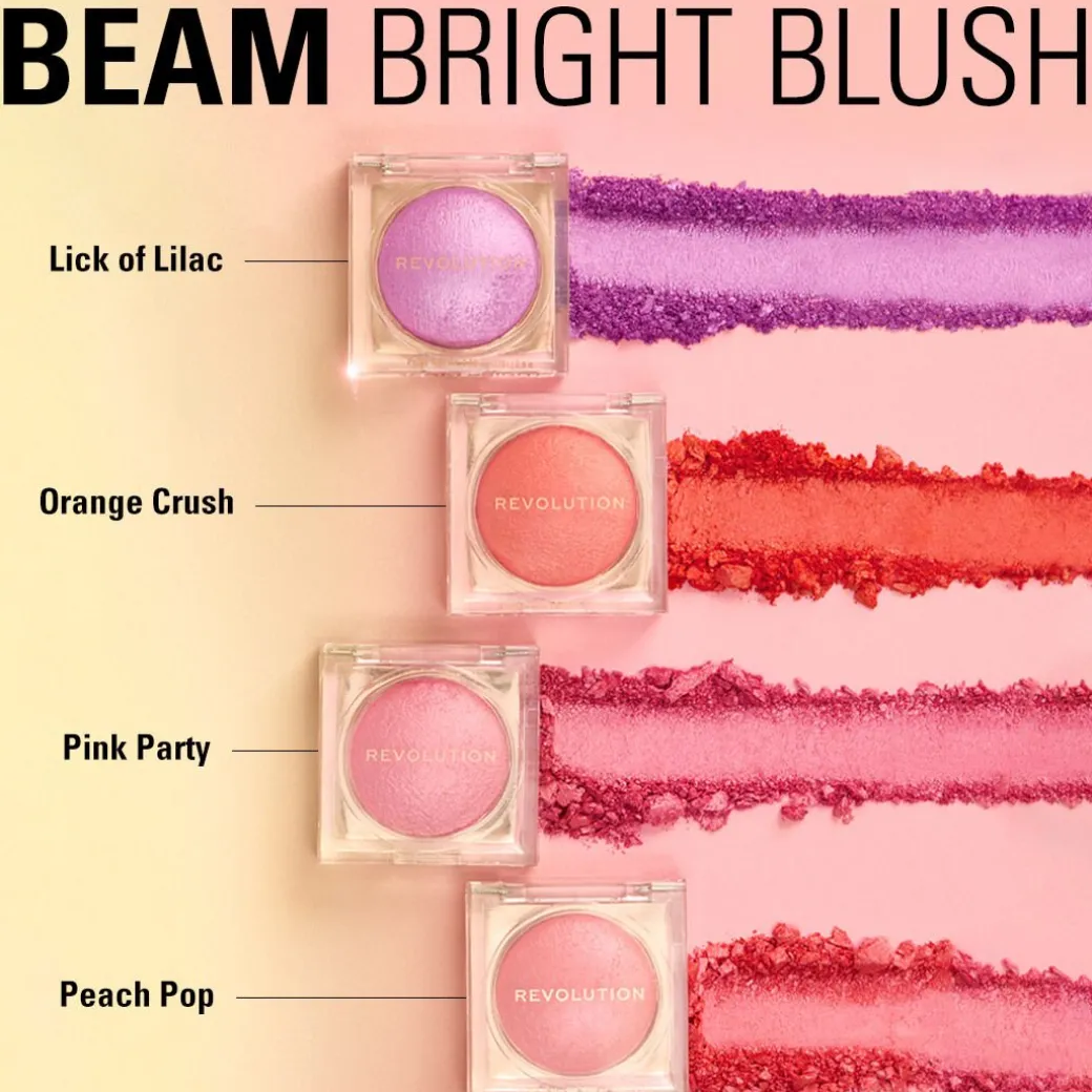 Nouveauté : le blush Beam Bright Blush de Revolution, un blush soyeux au toucher velours avec un fini subtilement lumineux pour ajouter de la couleur et de la dimension à votre teint.