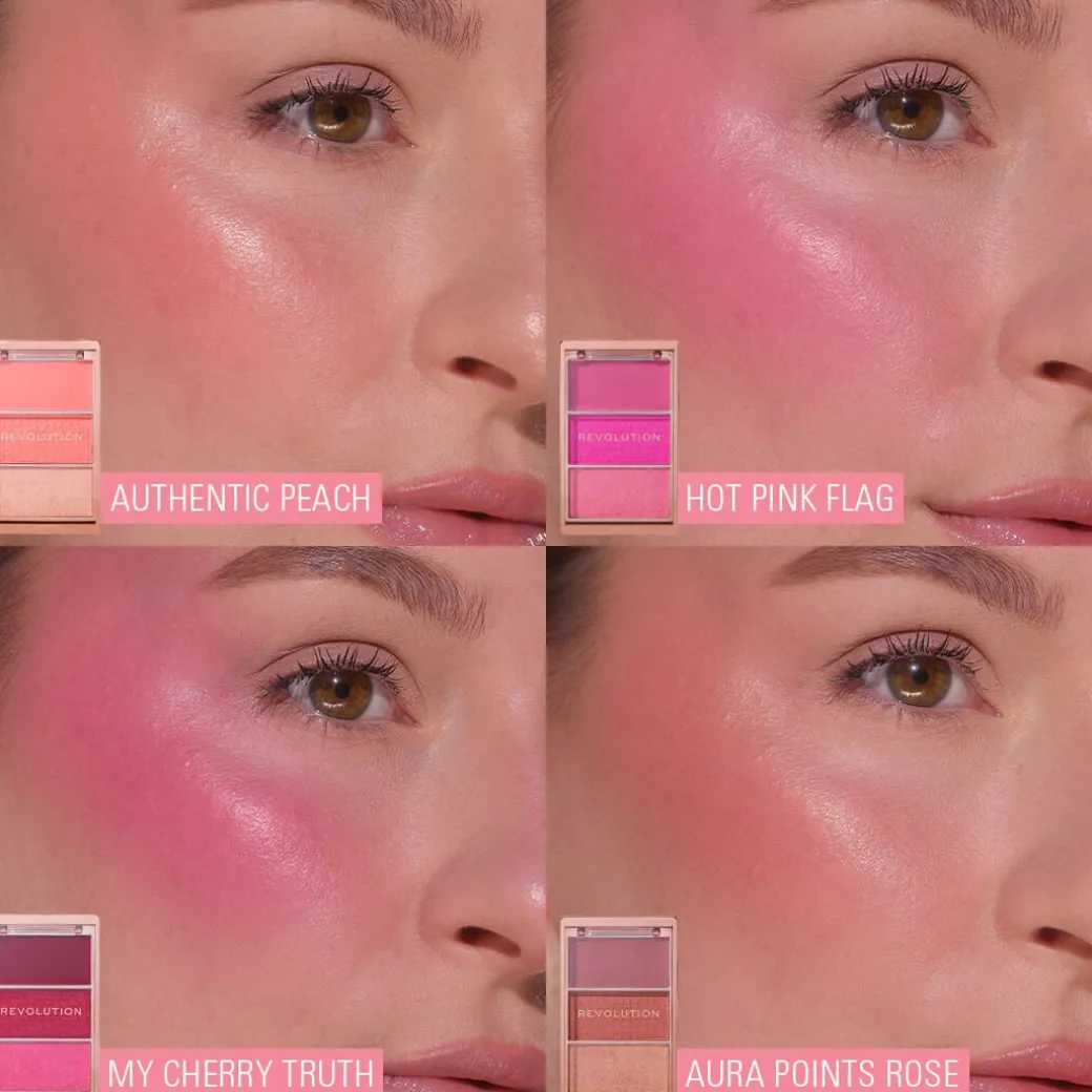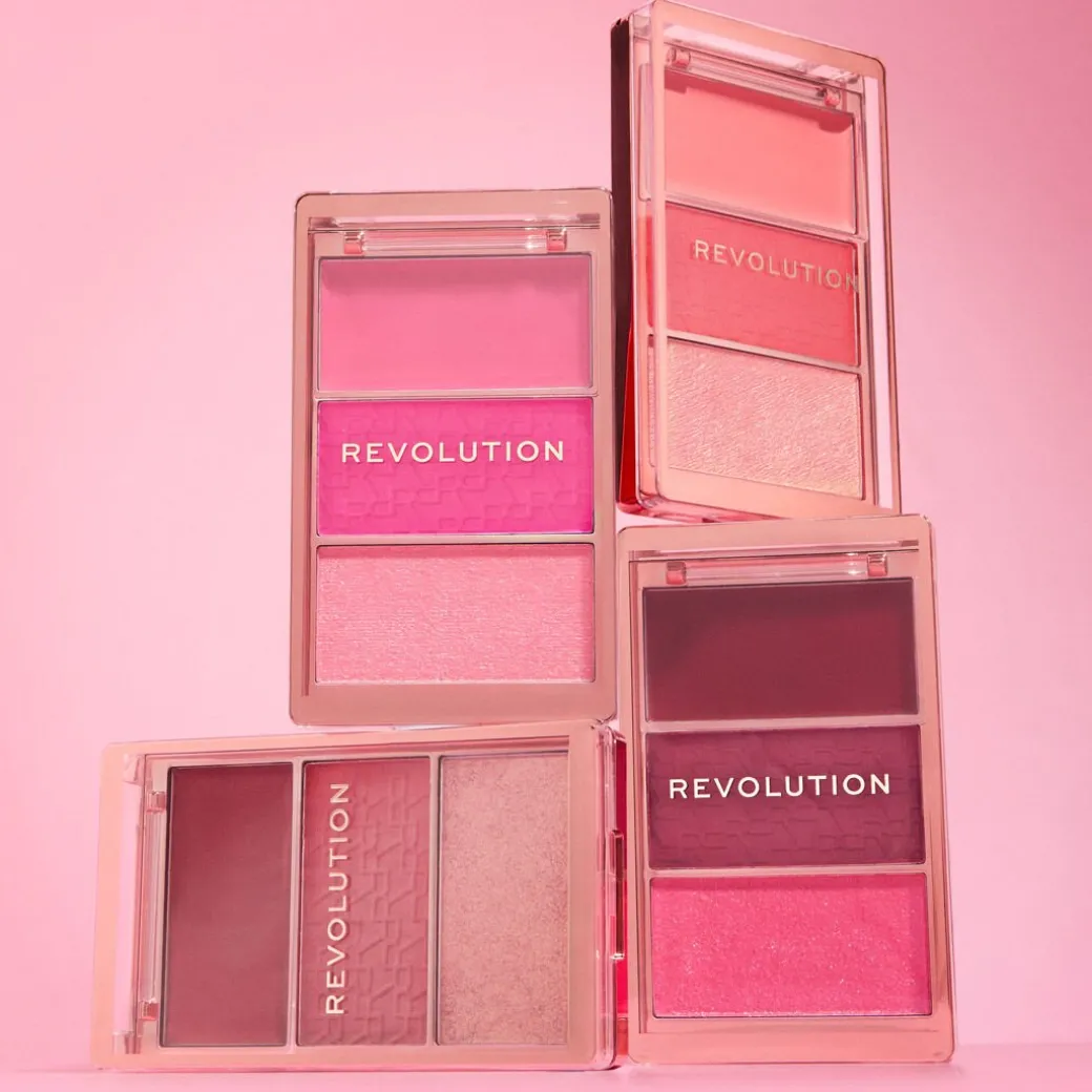 Nous vous présentons le dernier venu de la gamme ICON : les palettes de blushs signées Revolution ! Trois blushs (un crème, un mat et un irisé) regroupés dans une seule palette pour une touche de couleur parfaite au quotidien.