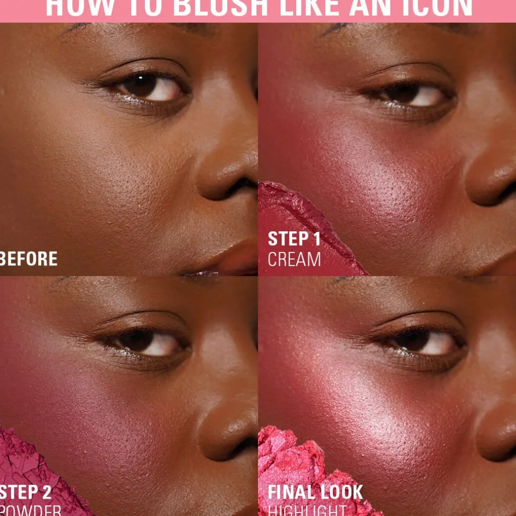 Appliquez-les à votre gré : utilisez un seul blush ou superposez-les pour une teinte personnalisée ! Superposez les différentes formules (crème, poudre et irisée) pour un blush longue tenue.