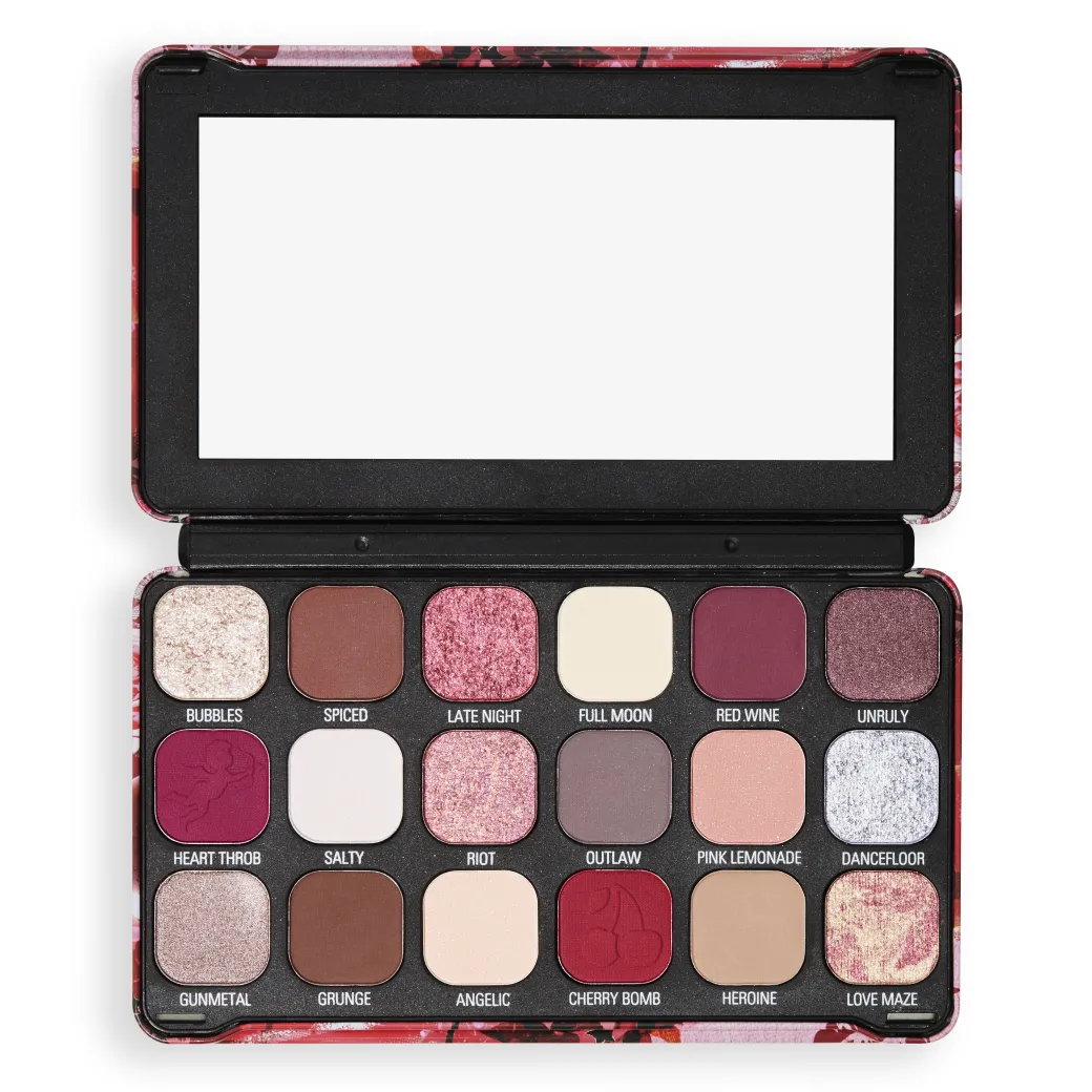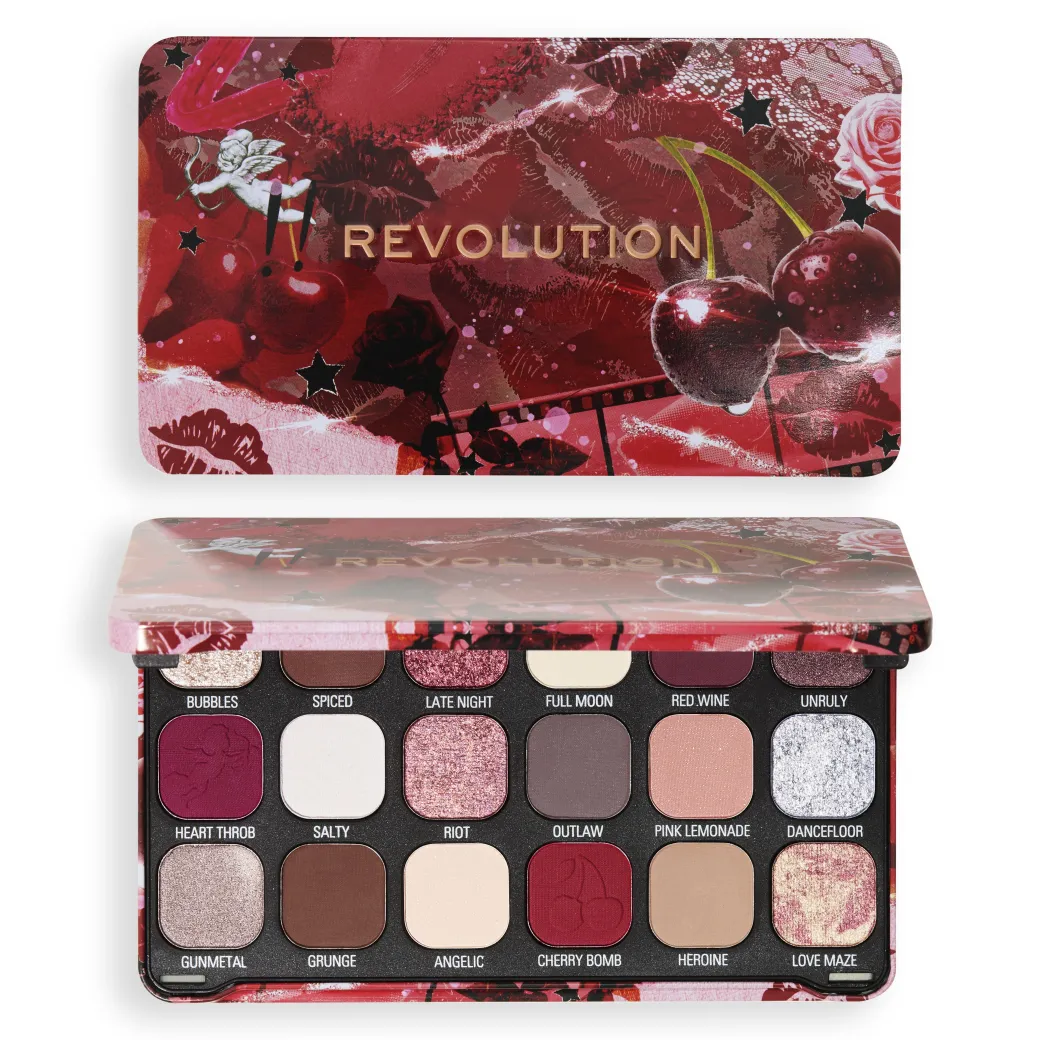 Réveillez le rebelle qui sommeille en vous avec la palette Revolution Forever Flawless Cherry Rebel Red Palette, une palette bordeaux foncé inspirée du grunge pour un make-up tendance couleur vin rouge.