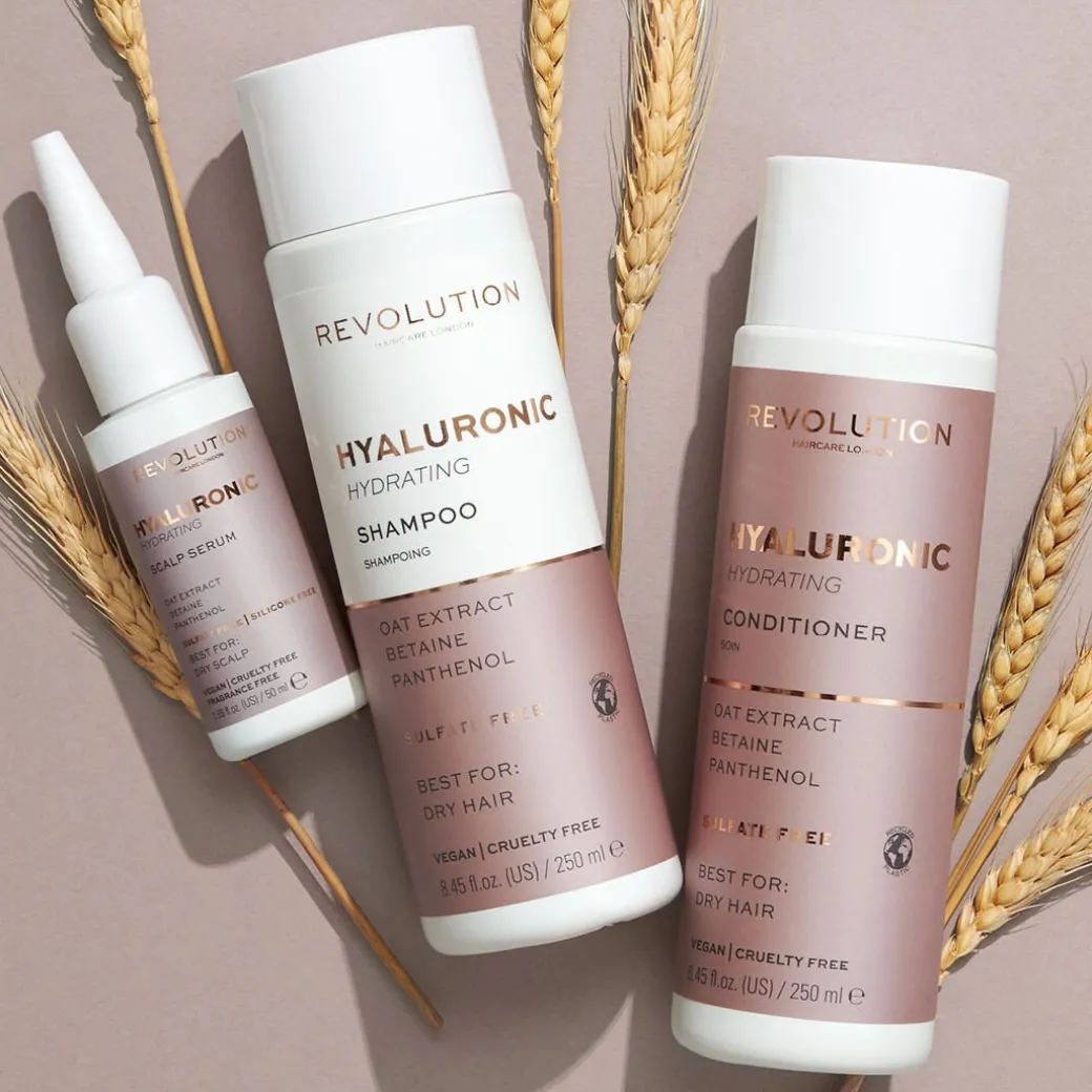 Des soins pour les cheveux aux ingrédients de soins de la peau ! Développé pour hydrater et laisser vos cheveux doux et lisses, le shampooing pour cheveux secs Revolution Haircare Hyaluronic Acid Hydrating Shampoo for Dry Hair utilise le pouvoir d’ingrédients traditionnellement retrouvés dans les produits de soin de la peau.