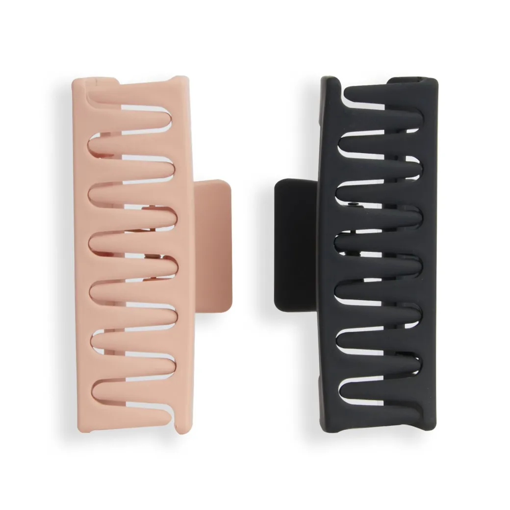 Créez des chignons sans effort en un clin d’œil avec ce lot de deux accessoires essentiels. Les pinces Rectangle Matte Claw Clips de Revolution sont des accessoires faciles à manier avec 14 dents pour bien agripper les cheveux.