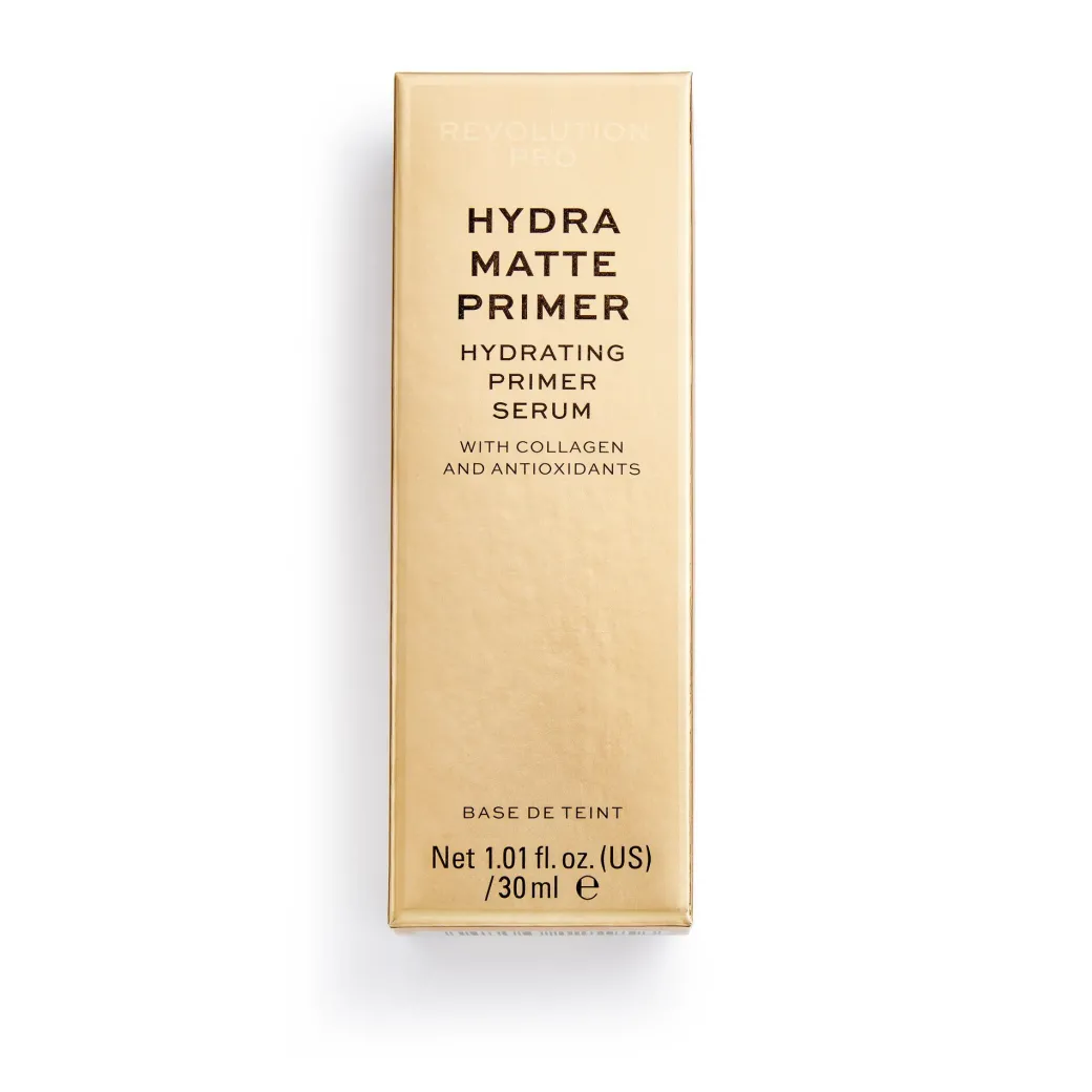 Makeup, das mehr kann. Mit unserem Hydra Matte Primer vermeidest du unerwünschten Hautglanz, und deine Haut wird mit Feuchtigkeit versorgt. Dieser All-in-One-Primer mit Serum ist mit Kollagen und Antioxidantien angereichert und hilft, deinen Teint zu straffen und gleichzeitig die Haut zu schützen und für das makellose Auftragen von Makeup vorzubereiten. Nach der Hautpflege ein- bis zweimal pumpen, mit den Fingern auftragen und vollständig trocknen lassen, bevor du das Makeup aufträgst. Suchst du nach dem ultimativen matten Finish? Runde deinen Makeup-Look mit unserem durchscheinenden Revolution PRO Hydra Matte Grundierungspuder ab.