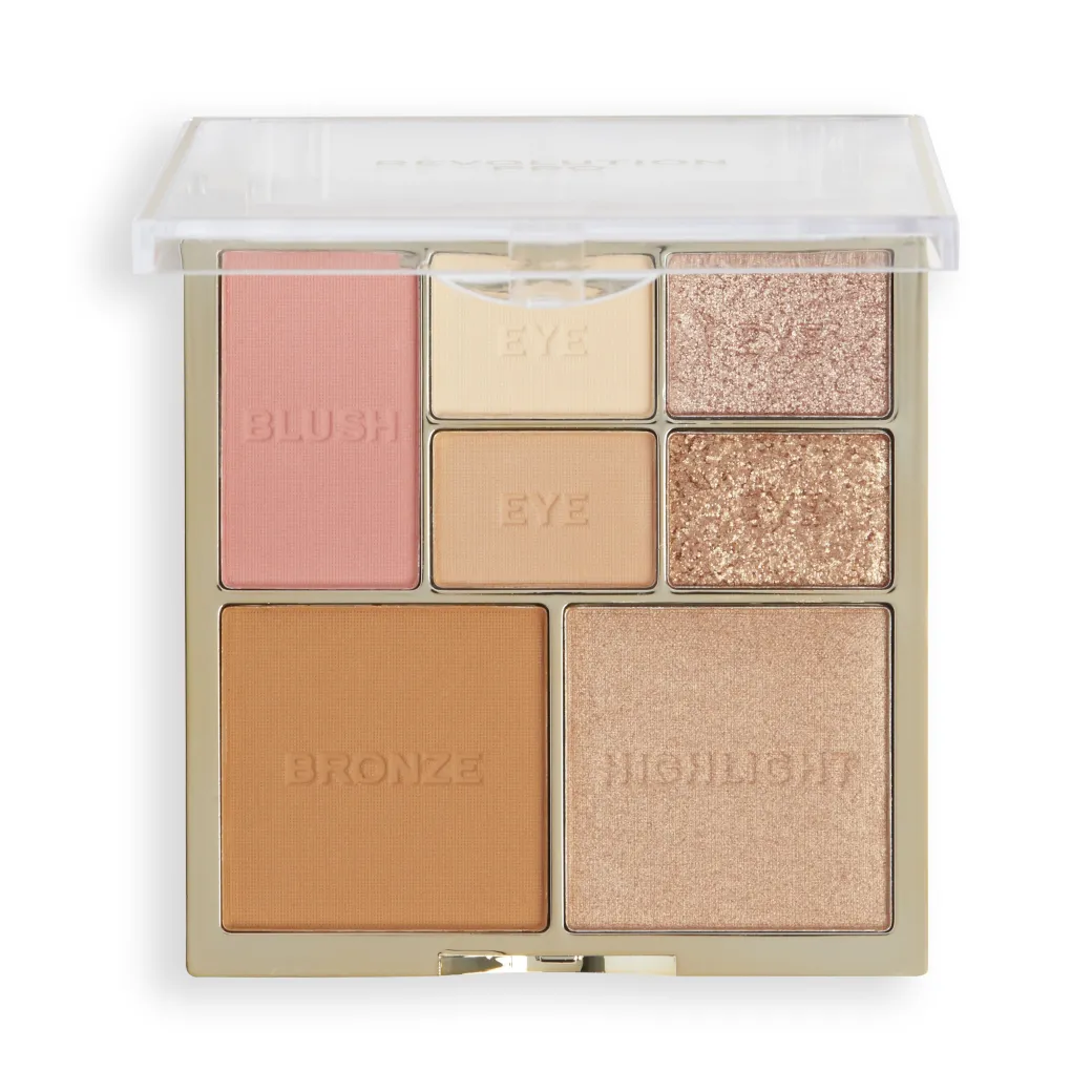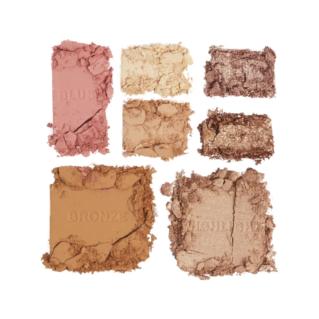 Cette palette comprend 7 teintes à utiliser pour les yeux et le teint. Vous y trouverez 4 fards à paupières dans des couleurs complémentaires dans une harmonie de finis mat et irisé, 1 blush en poudre, 1 highlighter en poudre et 1 bronzer en poudre. De plus, cette petite palette se présente dans un luxueux packaging qui sera du plus bel effet dans votre sac.