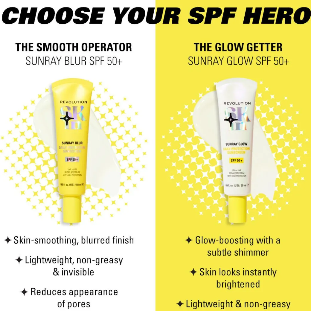 Une peau lisse et protégée du soleil ! Notre crème solaire Sunray Blur Daily Protection Sunscreen SPF 50+ Moisturiser protège, hydrate et réduit l’apparence des pores grâce à son effet lissant.
