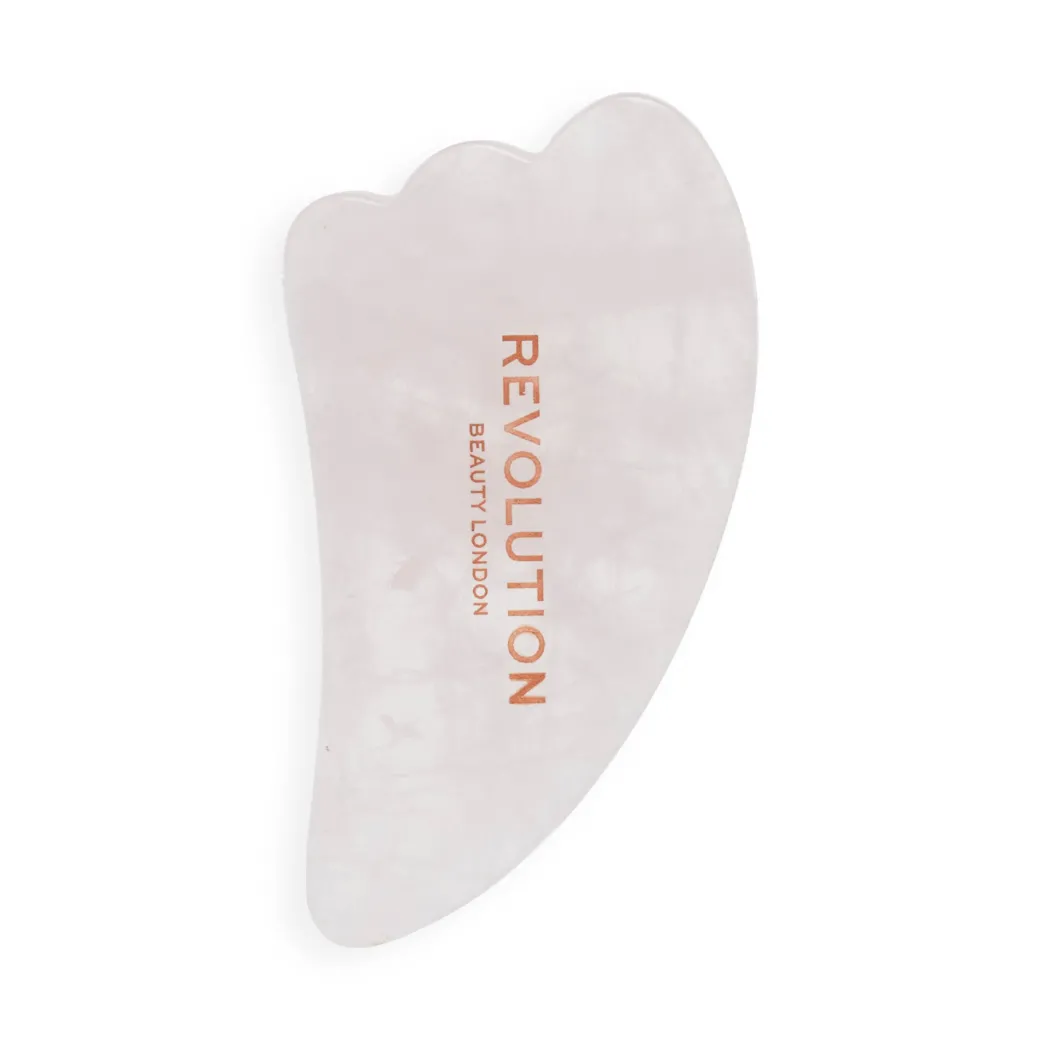 Faites faire à votre visage une petite séance de muscu avec notre Rose Quartz Gua Sha signé Revolution Skincare, un outil en forme de 3 pour le visage.