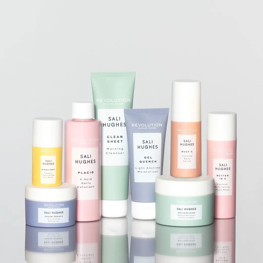 Sali Hughes, journaliste beauté et experte en soins de la peau, a collaboré avec Revolution Skincare pour créer « une routine simple et rapide mais néanmoins efficace pour tous les beautistas débordés… Des produits performants pour une routine facile. »