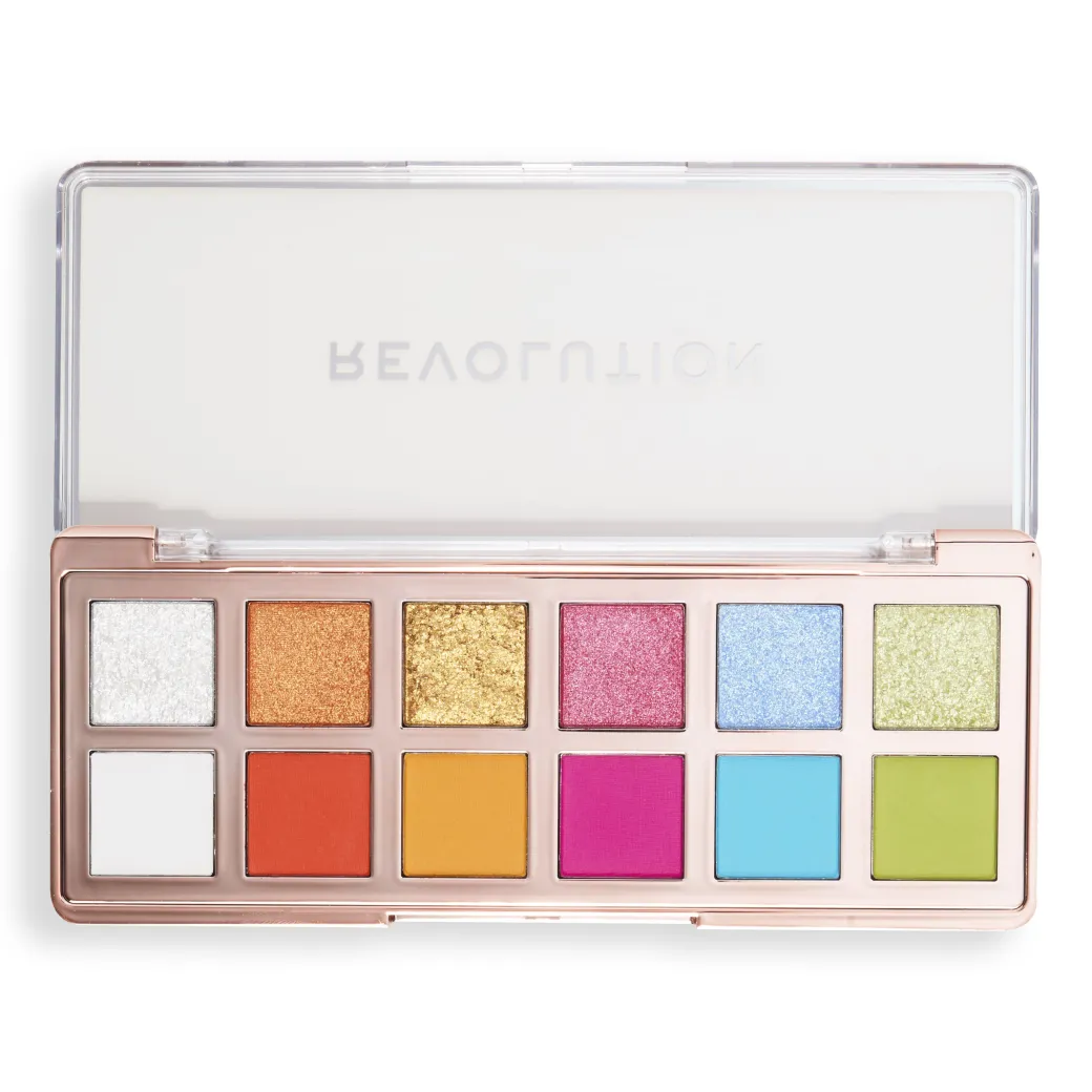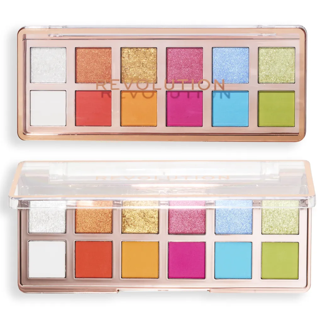 Introducing Revolution’s latest in shadow innovation – now in ICONIC brights! Packed with high-impact cream, matte and shimmer pigment! 12 compact pans, endless eye looks…from wearable to statement, these shadows blend like butter for a vivid, luxe finish.