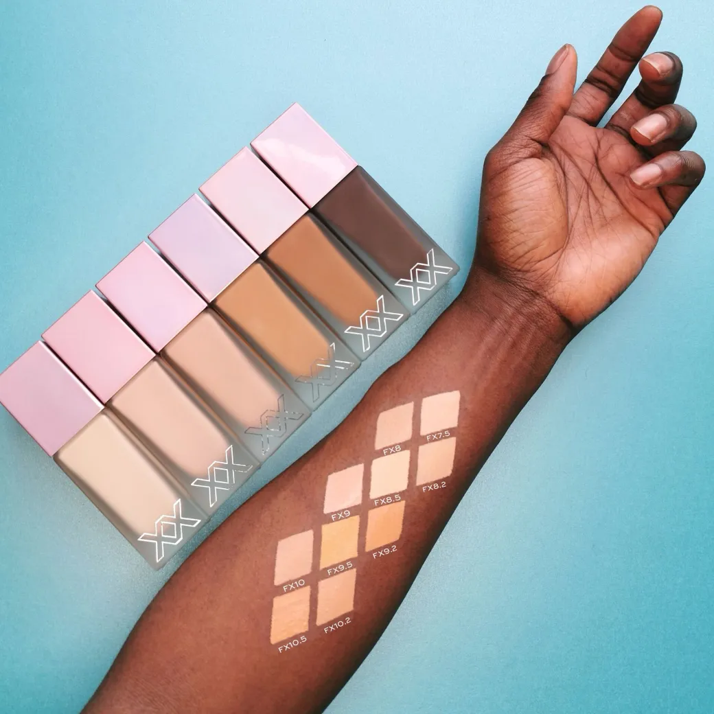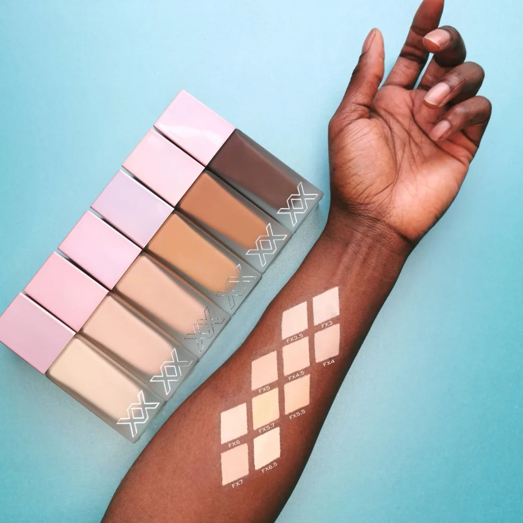 Glow up avec les 55 teintes du XX Revolution Skin Glow Fauxxation, une couvrance légère et modulable avec des particules de perles illuminatrices.