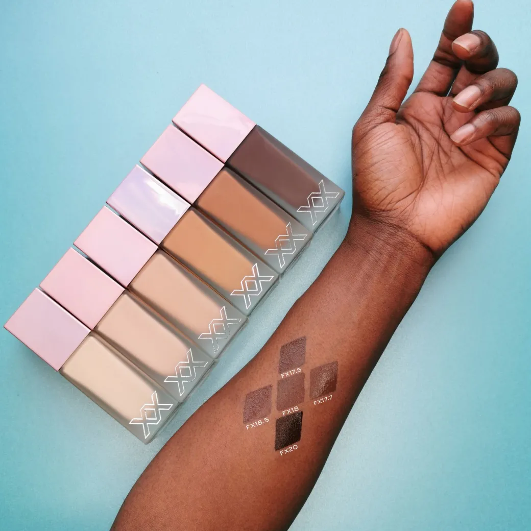 Glow up avec les 55 teintes du XX Revolution Skin Glow Fauxxation, une couvrance légère et modulable avec des particules de perles illuminatrices.