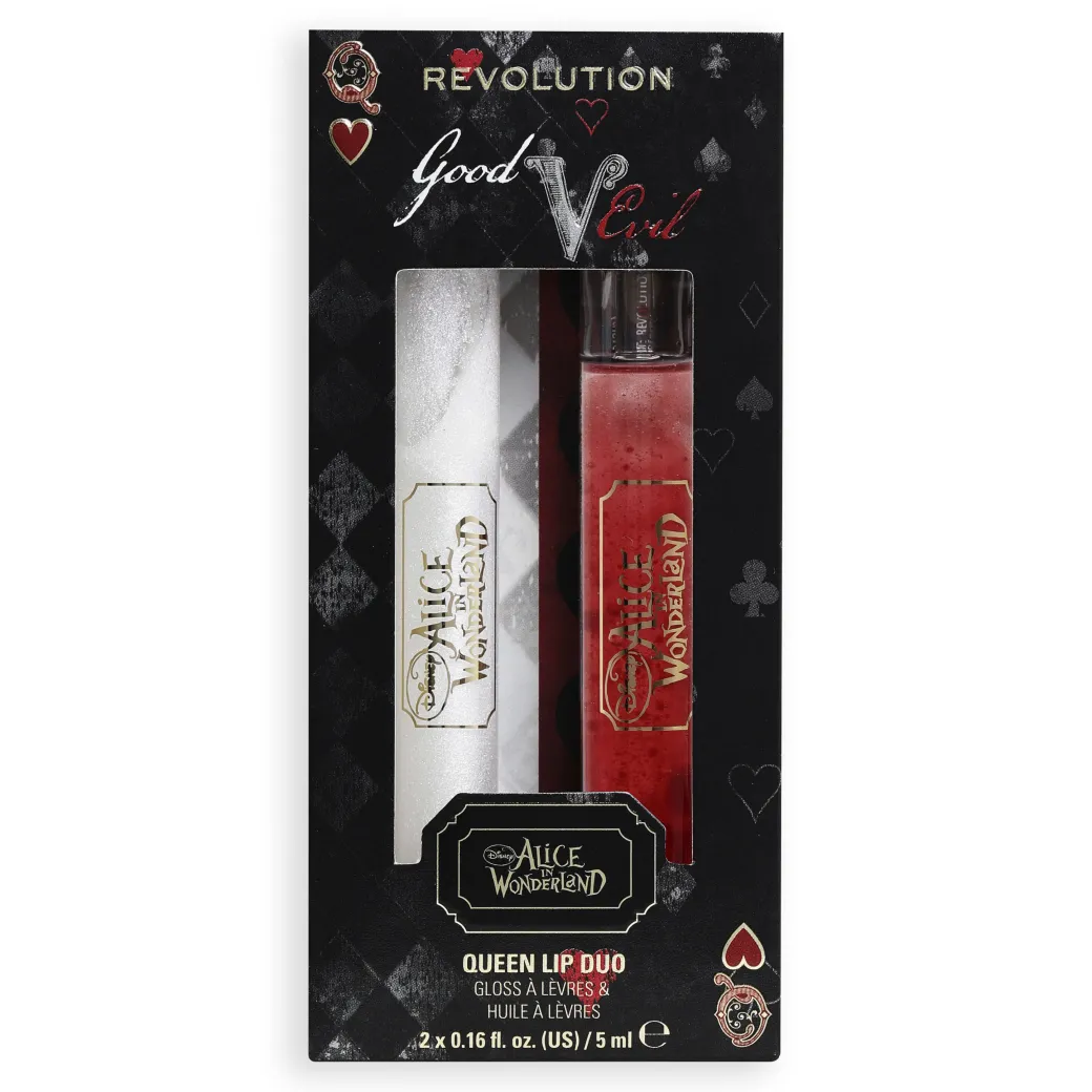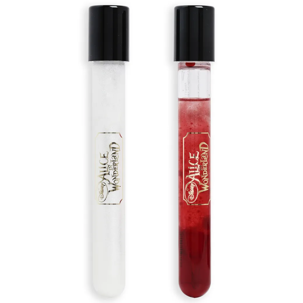 Choisissez votre camp… Ce lot de deux vous propose deux gloss présentés dans de jolies fioles, inspirés par la Reine Rouge et la Reine Blanche. Leur applicateur fin en silicone permet une application facile et précise. Portez-les seuls pour une touche de couleur et de brillance ou par-dessus un rouge à lèvres de la gamme Alice au Pays des Merveilles de Revolution !