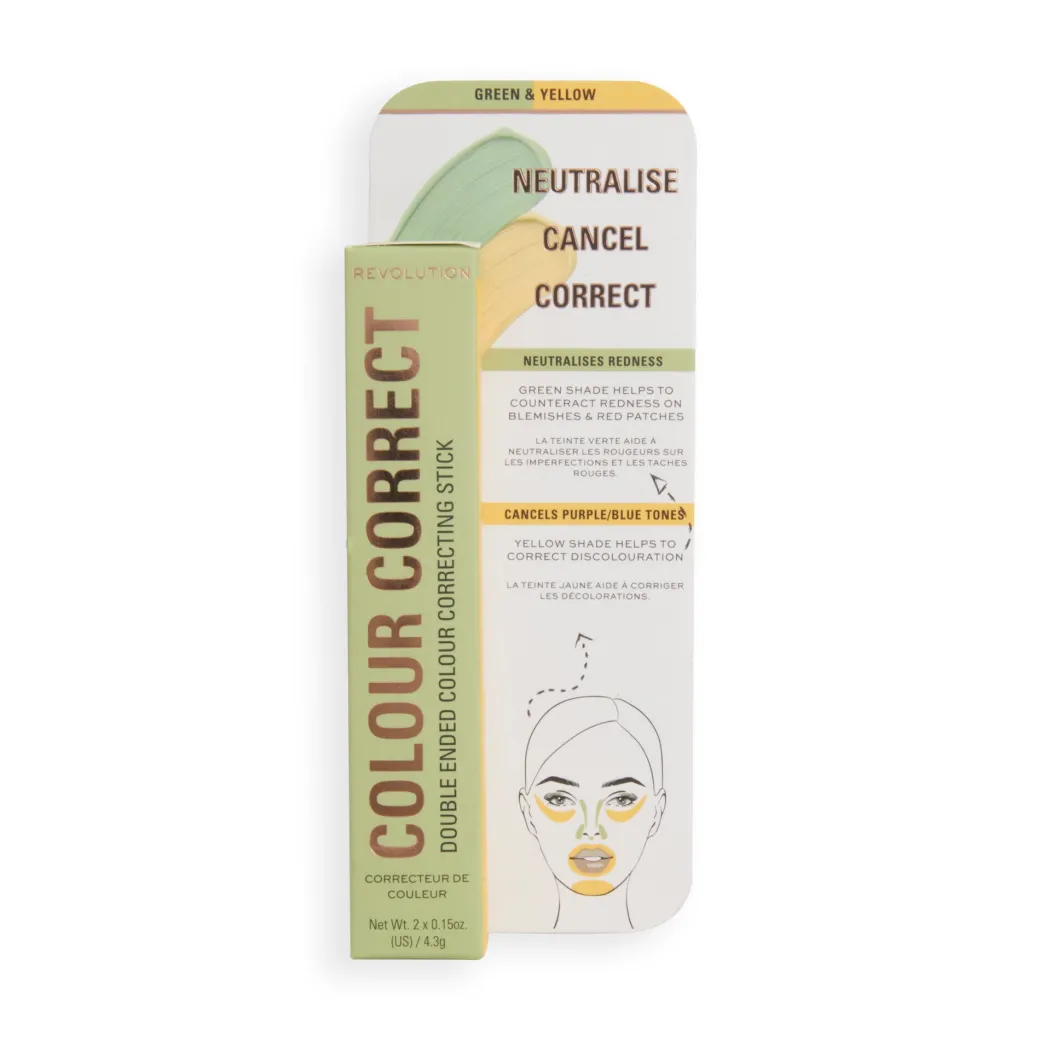 Obtenez un teint zéro défaut avec le stick Revolution Correct & Transform dans la teinte Yellow & Green. Ce correcteur de couleur double embout permet d’illuminer et d’uniformiser votre teint avant l’application du maquillage. Un essentiel à glisser dans votre trousse de toilette !