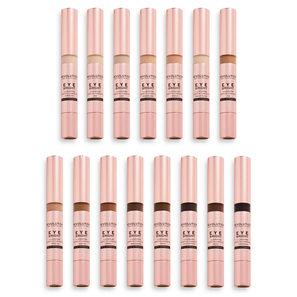 Regards fatigués, c’est pour VOUS ! L’amti-cernes Revolution’s Eye Bright Illuminating Under Eye Concealer a été spécialement formulé pour les cernes foncés, offrant une couvrance modulable avec plein de vitamine C afin de traiter la zone corrigée !