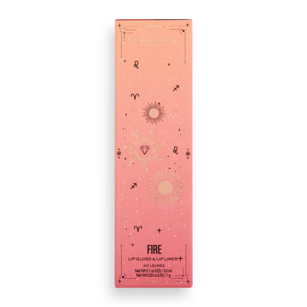 Inspiré par le Sagittaire, le Lion et le Bélier, le kit lèvres ‘Fire’ est le combo rouge glossy parfait pour des looks séducteurs. Ce kit comprend un gloss et un crayon assorti. Utilisez le crayon pour redessiner le contour de vos lèvres, dégradez la couleur vers l’intérieur de votre bouche pour éviter toute démarcation trop franche, puis appliquez le gloss.