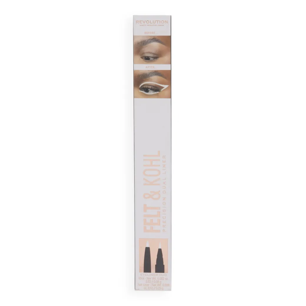 KOHL LINER (INGREDIENTS): – METHYL TRIMETHICONE, TRIMETHYLSILOXYSILICATE, POLYETHYLENE, MICA, DIISOSTEARYL MALATE, SILICA, CERA CARNAUBA (COPERNICIA CERIFERA [CARNAUBA] WAX, CIRE DE CARNAUBA), TRIETHOXYCAPRYLYLSILANE, TOCOPHERYL ACETATE, ACRYLATES/STEARYL ACRYLATE/DIMETHICONE METHACRYLATE COPOLYMER, DISTEARDIMONIUM HECTORITE, PROPYLENE CARBONATE, DIMETHICONE, CI 77891 (TITANIUM DIOXIDE).FELT EYELINER (INGREDIENTS): – AQUA (WATER, EAU), STYRENE/ACRYLATES COPOLYMER, KAOLIN, BUTYLENE GLYCOL, ALUMINUM HYDROXIDE, SILICA, PHENOXYETHANOL, PPG-2-DECETH-30, CAPRYLYL GLYCOL, ETHYLHEXYLGLYCERIN, SODIUM LAURYL SULFATE, SIMETHICONE, XANTHAM GUM, CI 77891 (TITANIUM DIOXIDE).