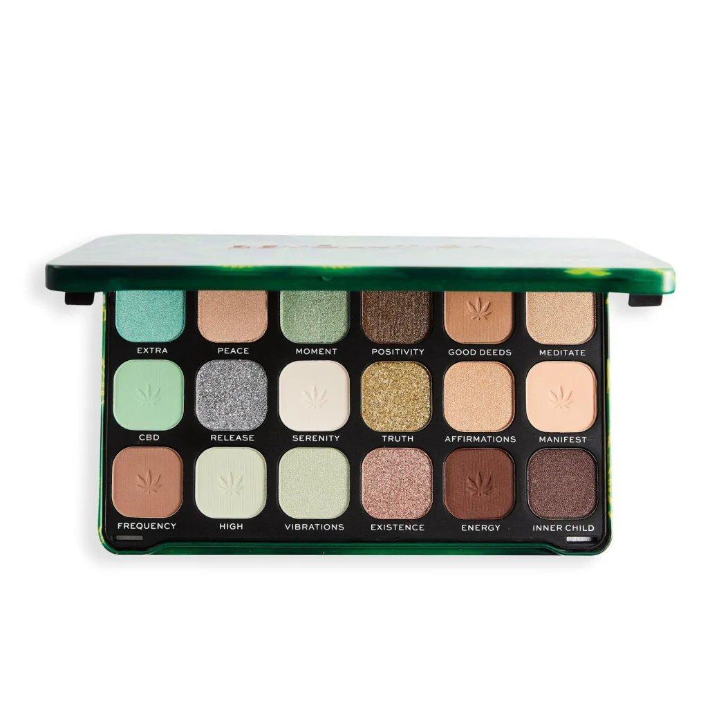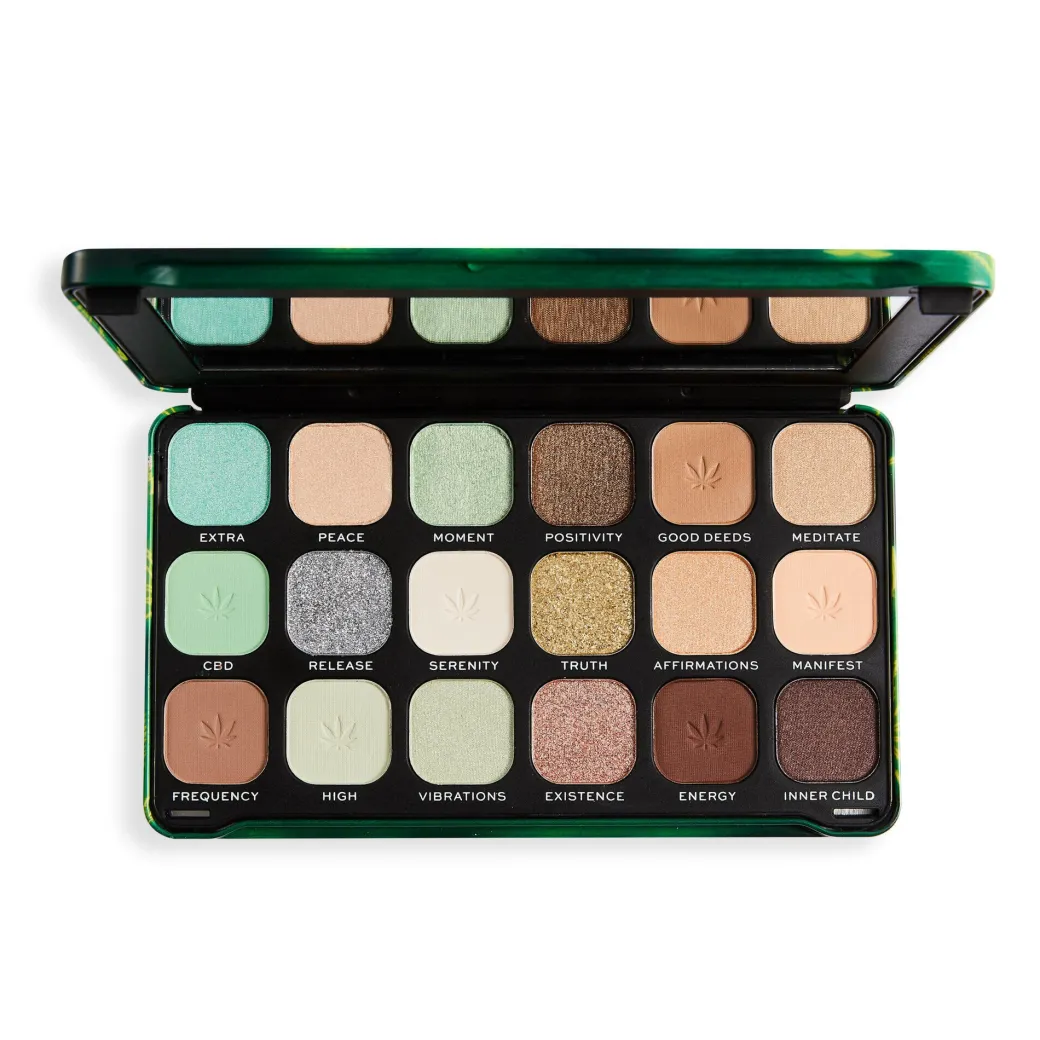 Dites adieu à la négativité avec cette palette. Nouveauté : Revolution Forever Flawless Chilled Vibes, une palette de 18 fards aux tons verts, dans une harmonie de mats et d’irisés. Infusés à l’huile de Cannabis sativa, ces fards pigmentés et modulables vous permettront de réaliser d’innombrables looks à couper le souffle.