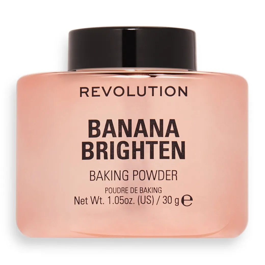 Nous avons retravaillé la formule de notre célèbre poudre libre, Banana Loose Baking Powder, et lui avons donné un peu de peps ! Nous sommes fiers de vous présenter notre nouvelle poudre libre à la texture satinée et fini soft-focus lumineux, la Revolution Banana Brighten Baking Powder ! Si vous êtes un adepte de la technique du « baking » mais que vous préférez un fini glowy au fini mat, alors ce produit est fait pour vous.
