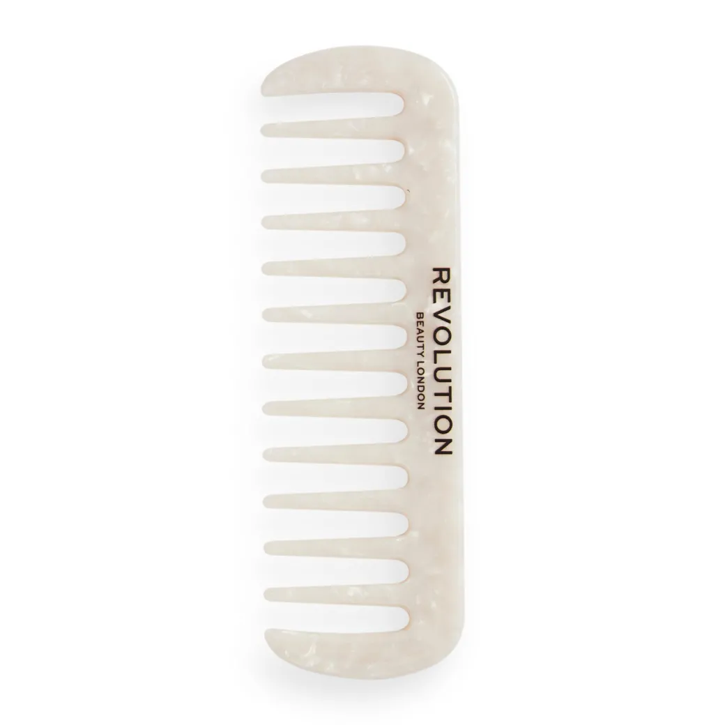 Tame your curls with the Revolution Haircare Natural Curl Wide Tooth Comb in White, the perfect accessory for curly or thicker hair.